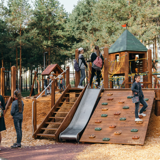Наша компания производит детские площадки из дерева только из высококачественной и экологически чистой древесины. Все углы закругляются, дерево обрабатывается специальным гипоаллергенным антисептиком.