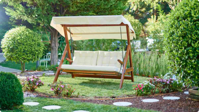 Эти удобные и прочные конструкции органично вписываются в ландшафтный дизайн дачи, коттеджа или парковой территории. Как взрослые, так и дети с удовольствием отдыхают на этих подвижных, тенистых сидениях.